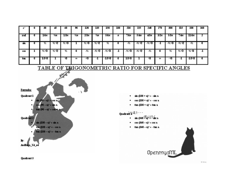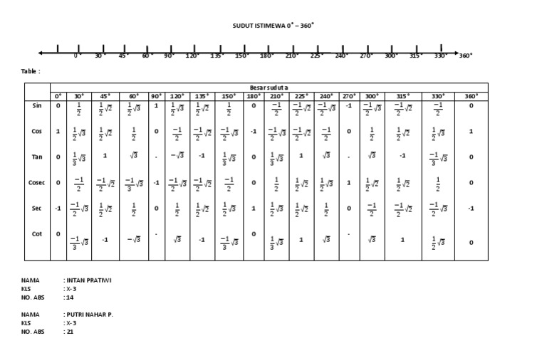 Tabel Sudut Istimewa Sin Cos Tan Cot Sec Cosec 0 Sampai 360 Trigonometri