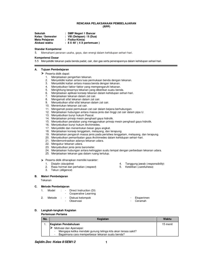 Rangkuman Materi Fisika Kelas 8 Tekanan Zat Penjelasan Rumus Aplikasi Fisika