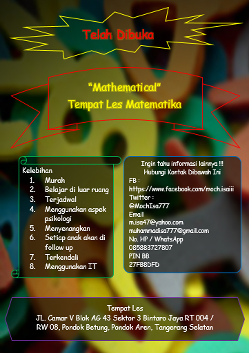 Wa 081222455533 Guru Privat Tempat Les Matematika Di Pasirsari Cikarang Selatan Bekasi Les Privat Jakarta Les Privat Depok Les Privat Bahasa Inggris Les Privat Matematika