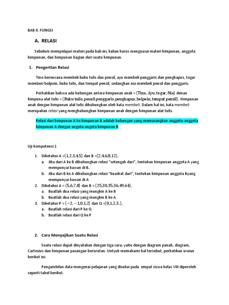 Ringkasan Materi Dan Penugasan Bdr Minggu Ke 6 Matematika Viii D Viii H Smp Negeri 2 Sragi