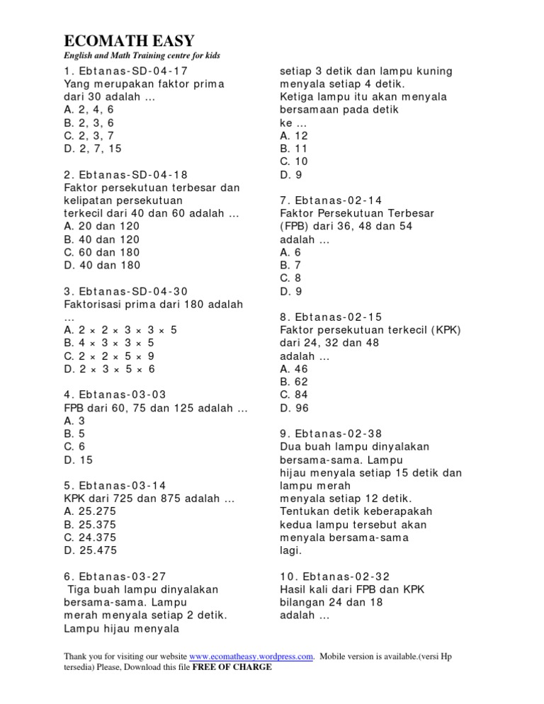 Rangkuman Dan Soal Matematika Fpb Dan Kpk Materi Belajar Dari Rumah Tvri Untuk Kelas 4 6sd