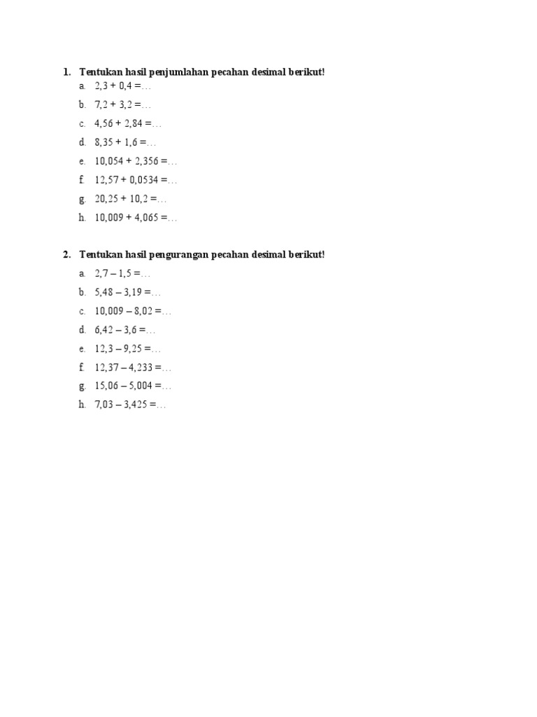 2 Tentukan Hasil Penjumlahan Pecahan Desimal Berikut C 4 56 2 84 Bikin Jalan Kebawah Brainly Co Id