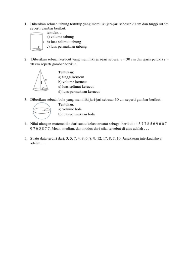 Contoh Soal Bangun Ruang Sisi Lengkung Tabung Kerucut Dan Bola Matematika 123