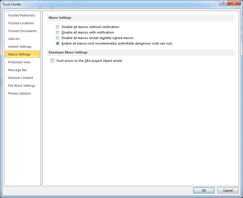 Download dulu add ins terbilang di sini. Klik menu file pada ms excel dan klik options. Klick enable all macros dan ok 2 kali.