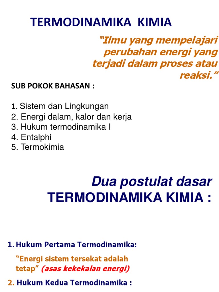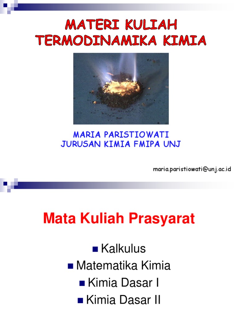 12 Pengantar Termodinamika Kimia Hk 1 Ppt Pengantar Kuliah Pengantar Termodinamika Kimia Kimia Dasar Ii Prodi Pendidikan Kimia A 1 Kamis 3 Maret Course Hero