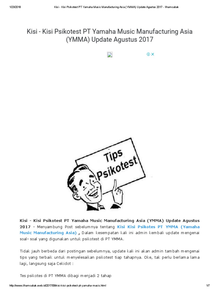 Kisi Kisi Psikotest Pt Yamaha Music Manufacturing Asia Ymma Update Agustus 2017 Ilhamcabak