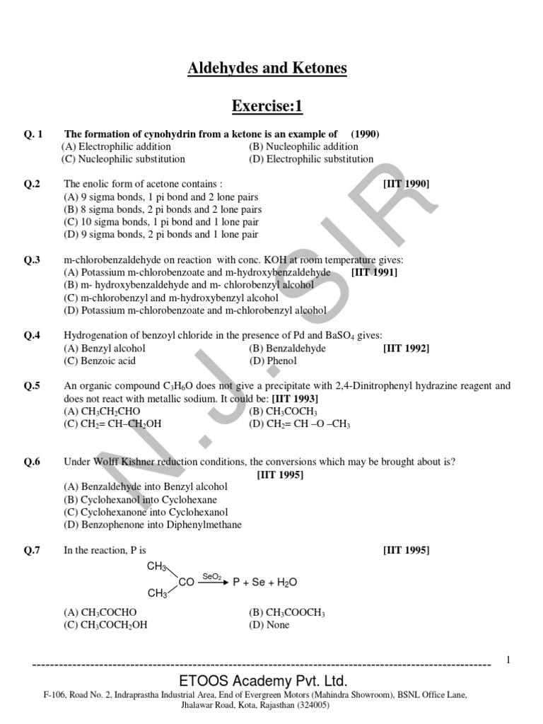 Jee Based On Nta Guidelines Iit Engg Advanced Chemistry Aldehyde And Ketones Organic Compounds With Oxygen Questions 1 To 6 Doorsteptutor