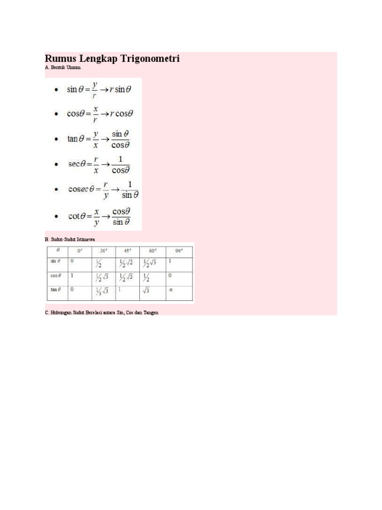 Kumpulan Rumus Trigonometri Sd Smp Sma Paling Lengkap