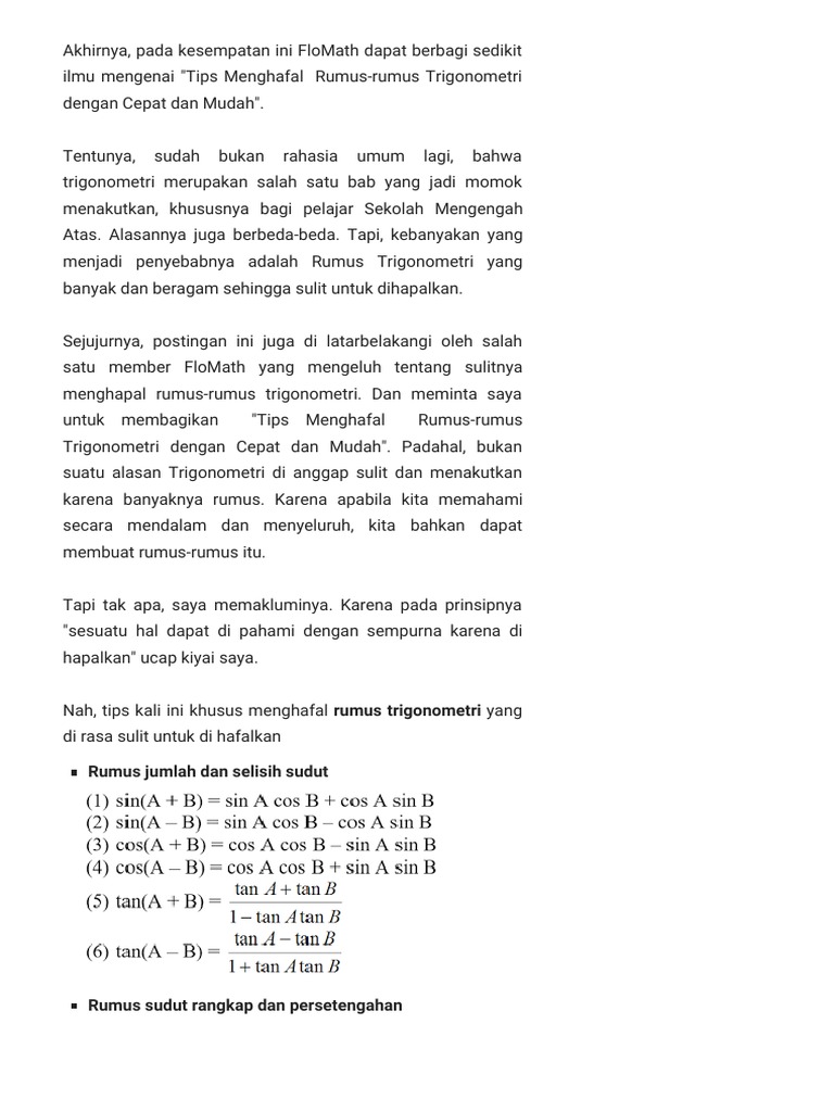 Rumus Trigonometri Belajar Matematika Dengan Mudah