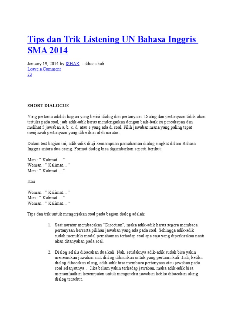 Cara Mudah Menghadapi Soal Listening Un Smk Sma Izyenglish