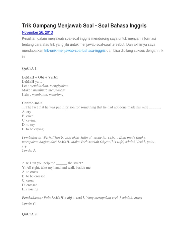 Trik Mengerjakan Kombinasi Tenses Tes Bahasa Inggris Part 1 English 4 Tests