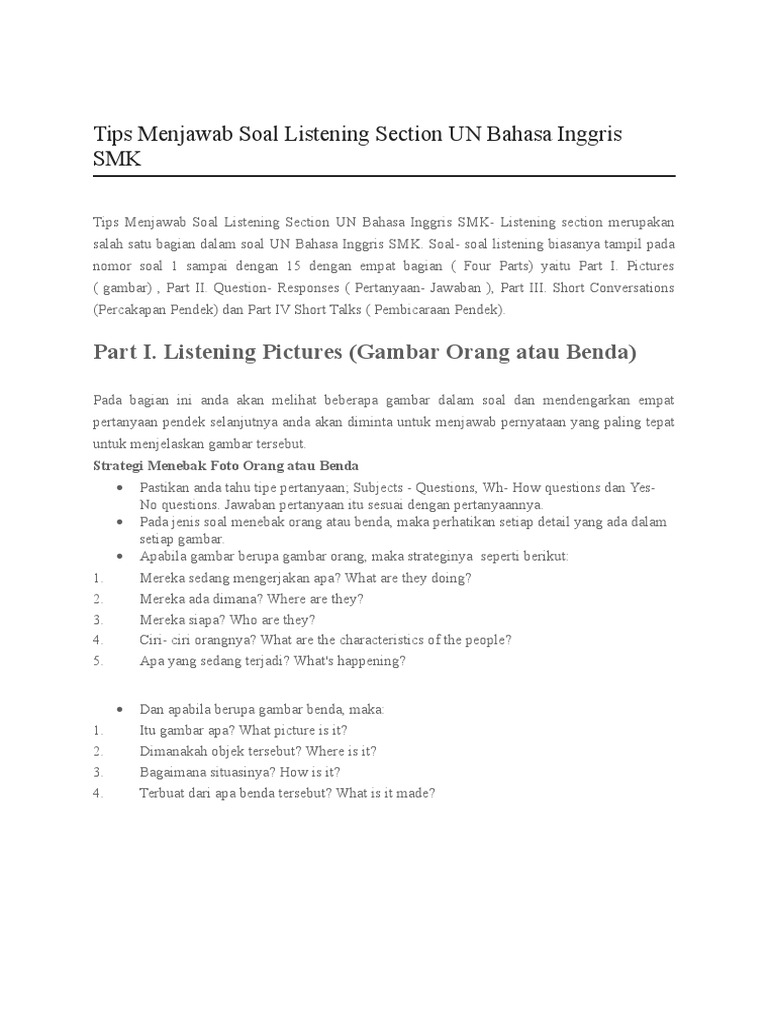 Tips Menjawab Soal Listening Section Un Bahasa Inggris Smk Ahzaa Net