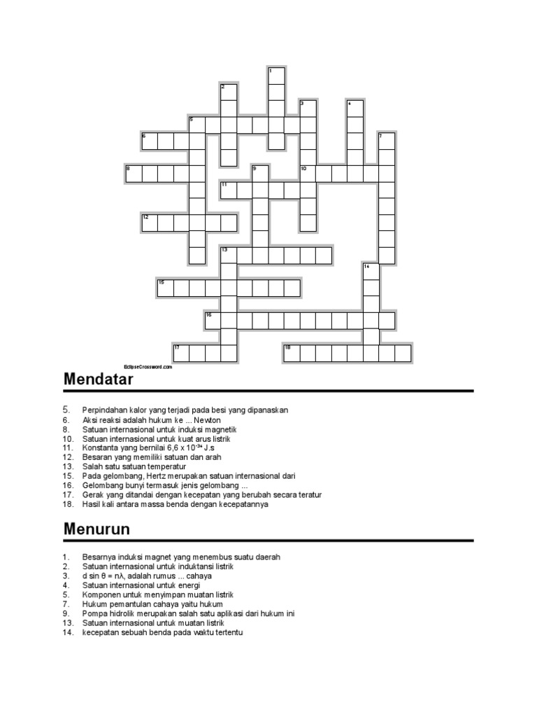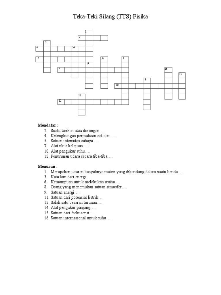 Bantuin Bikin Tts Fisika 15mendatar 15 Menurun Aku Kls 12 Ngedadak Bgt Dikasi Tugas Seabreg Abreg Brainly Co Id