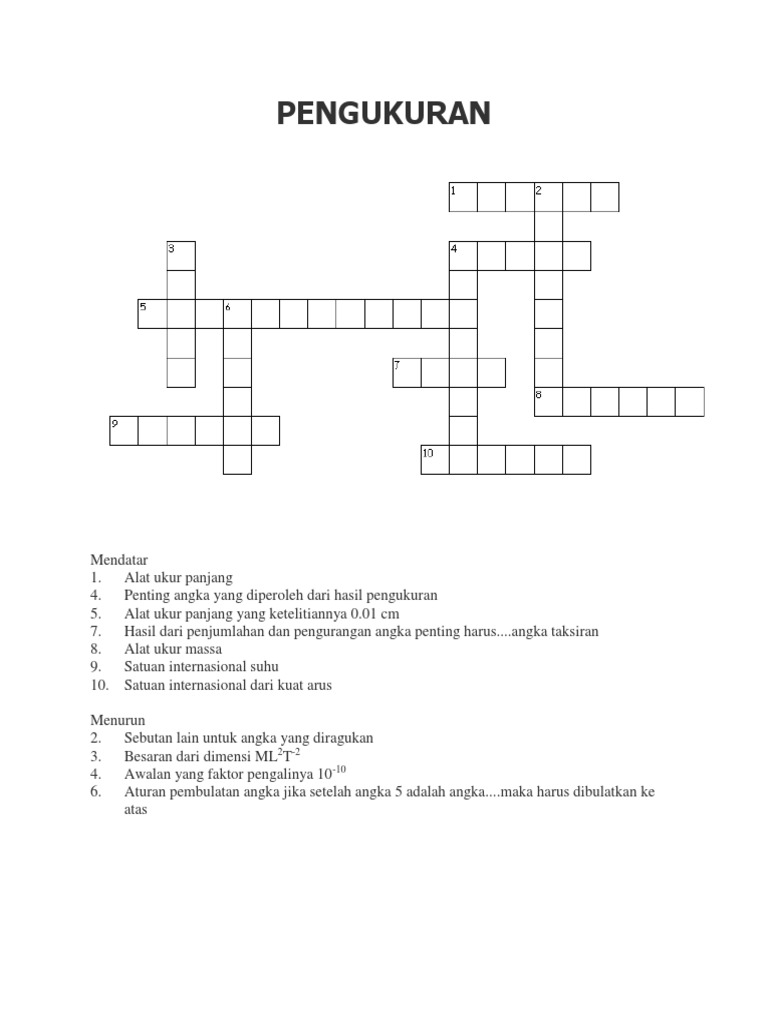 Satu Ilmu Soal Teka Teki Silang Ipa Bab 1 Besaran Dan Pengukuran Pada Makluk Hidup Dan Benda Lainnya