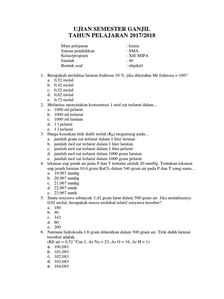 Penting Soal Kimia Kelas 12 Mohon Bantuannya Cara Disertai Jawaban Dari Soal Pada Brainly Co Id