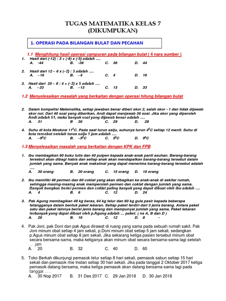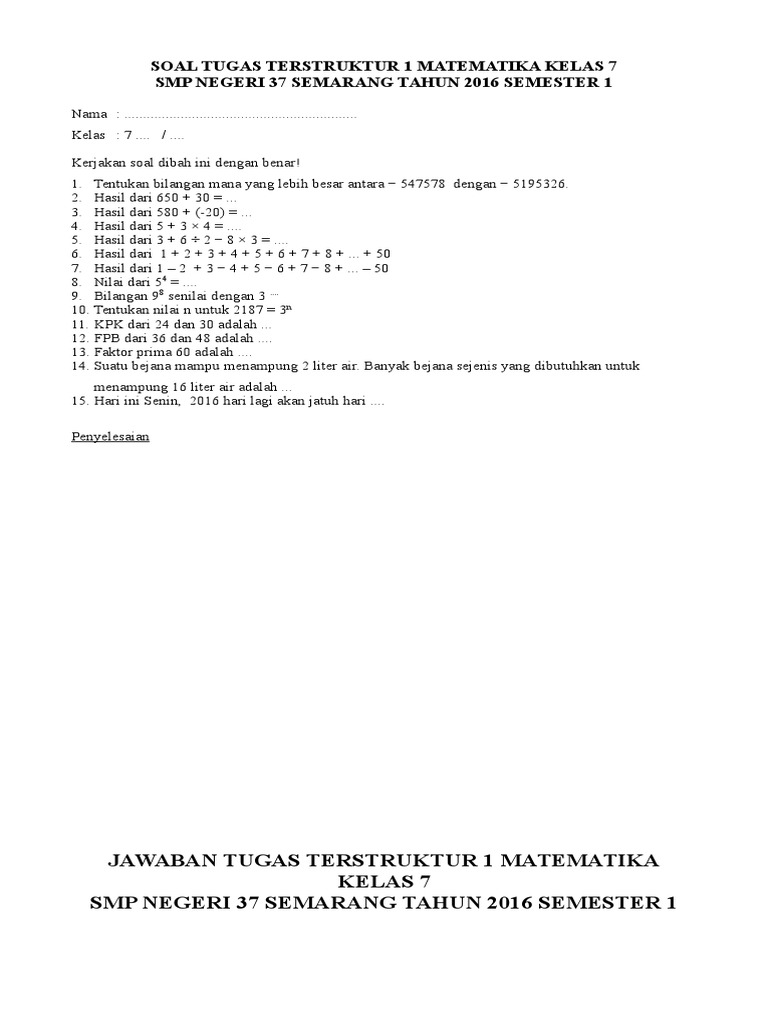 Tugas Terstruktur 1 Matematika Kelas 7 Vnd5yw7vkwlx