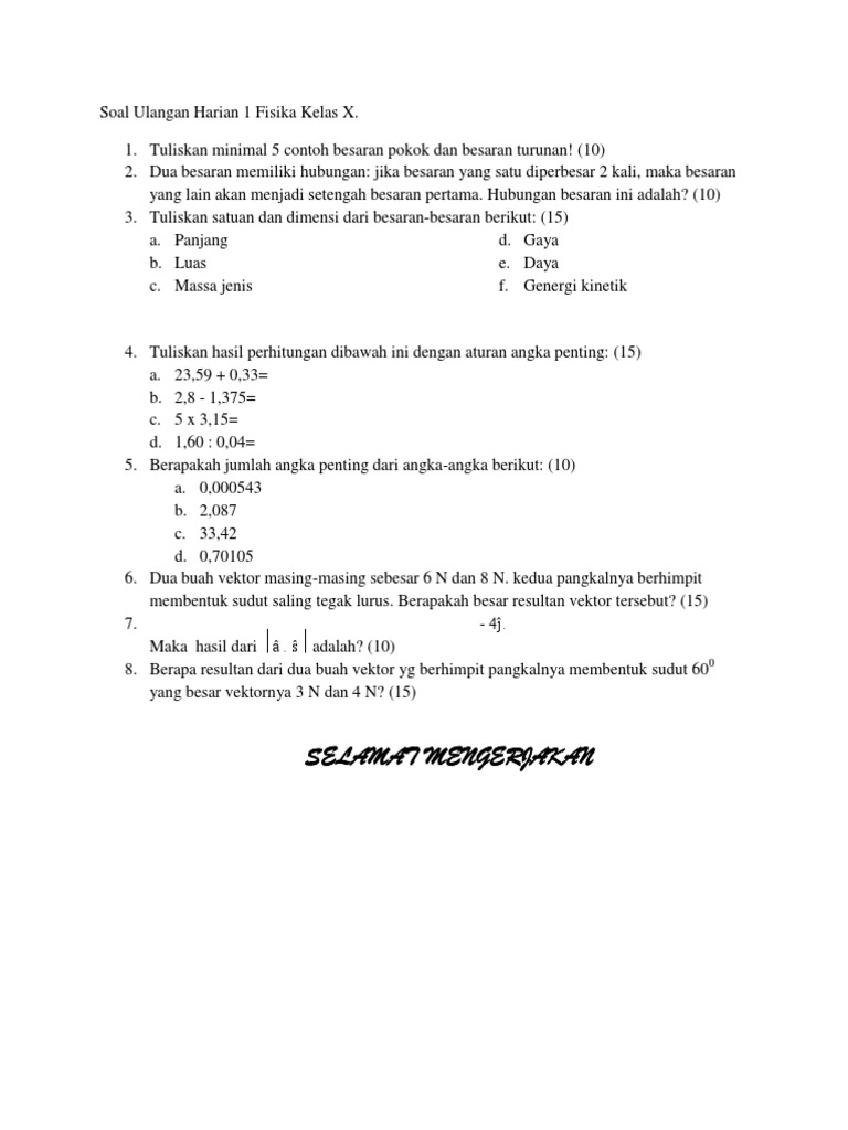 Tuliskan Masing Masing 5 Contoh Besaran Pokok Dan Besaran Turunan Dalam Si Beserta Satuan Nya Brainly Co Id