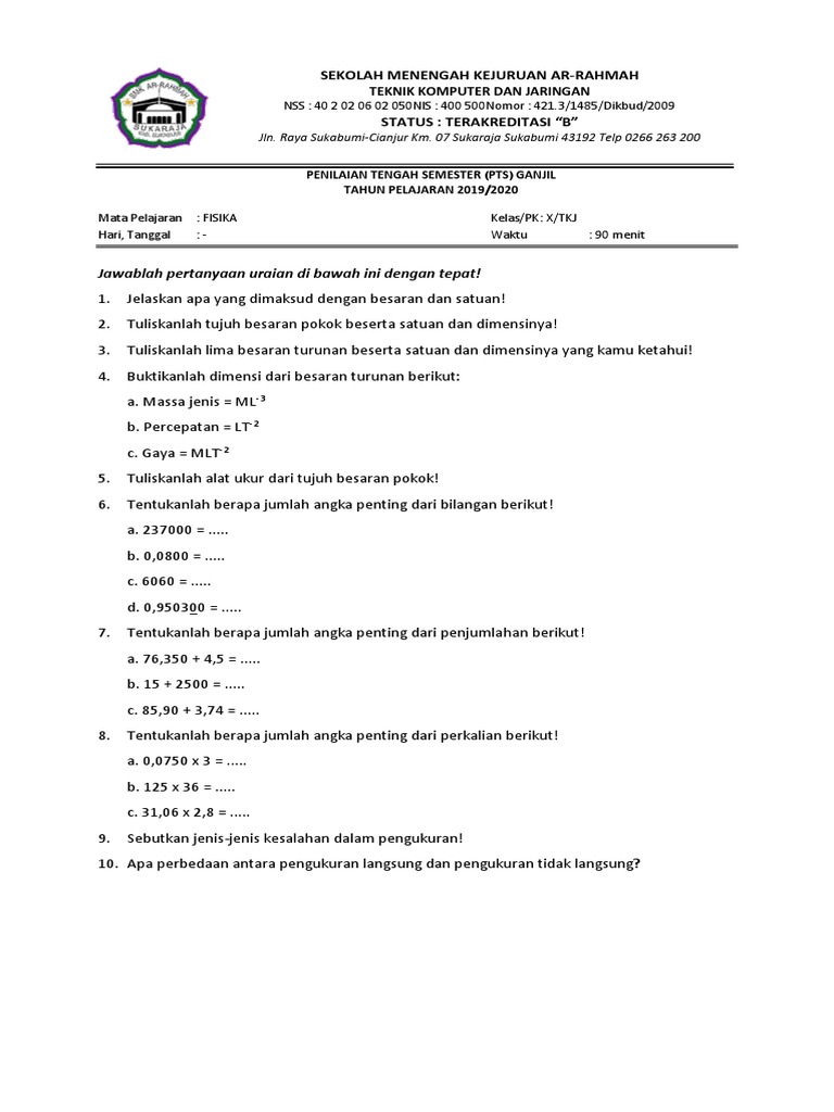 Besaran Pokok Dan Turunan Beserta Satuan Dan Dimensinya Myrightspot Com