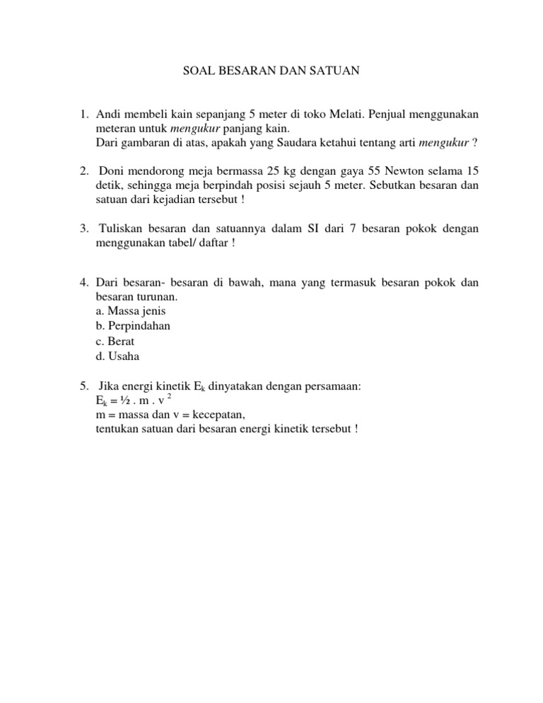 Besaran Satuan Pengukuran Pengertian Tabel Dan Contoh