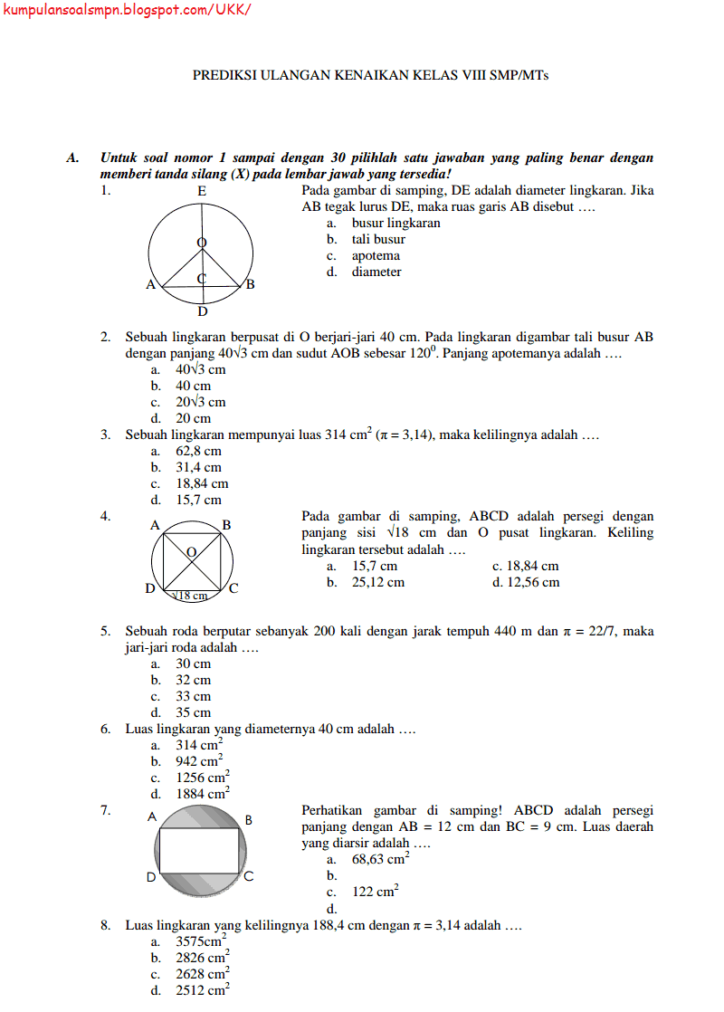 Soal Dan Kunci Jawaban Pat Matematika Smp Kelas 7 Kurikulum 2013 Tahun Pelajaran 2018 2019 Didno76 Com