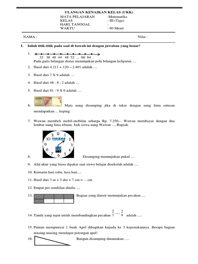 Latihan Soal Ulangan Uts Pts Matematika Kelas 3 Sd Semester 2 Genap Dan Pembahasan Youtube Cute766
