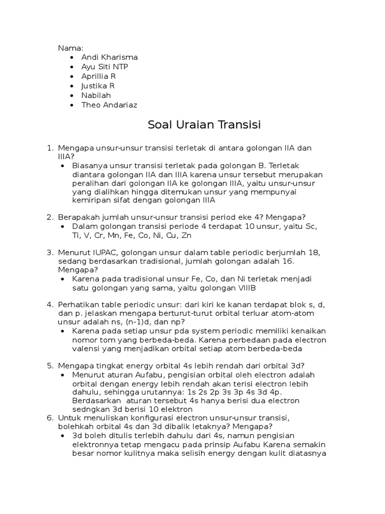 Sistem Periodik Unsur Spu Perkembangan Dasar Pengelompokan Unsur Sistem Periodik Mendeleev Unsur Transisi Dan Transisi Dalam Hubungan Konfigurasi Elektron Dengan Sistem Periodik Duniakumu