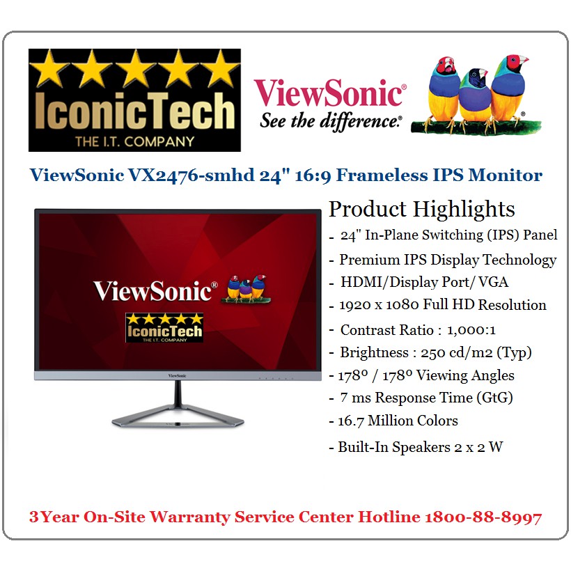 Viewsonic Vx2476 Smhd S 24 Ips 1080p Frameless Led Monitor Hdmi Displayport Refurbished Deal Parade
