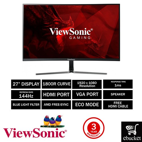 Viewsonic Vx2758 Pc Mh 27 Inch Full Hd Curved Gaming Monitor With Amd Freesync 144hz 1ms 1080p 2x Hdmi Vga 2x 2w Speakers Black Vx2758 Pc Mh Buy Best Price Global Shipping