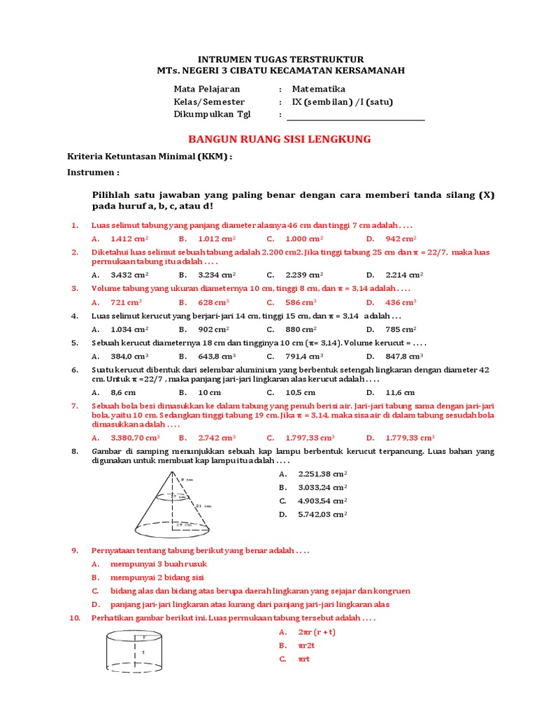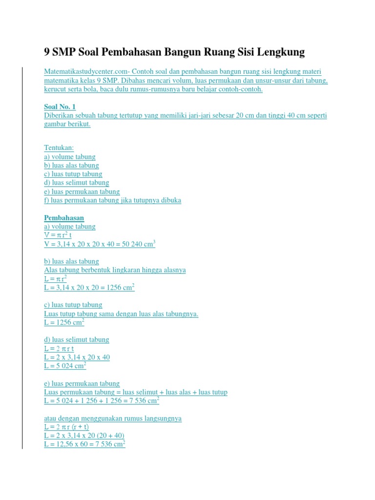 Doc Soal Dan Pembahasan Materi Bangun Ruang Sisi Lengkung Achmad Taufiqul Akbar Academia Edu