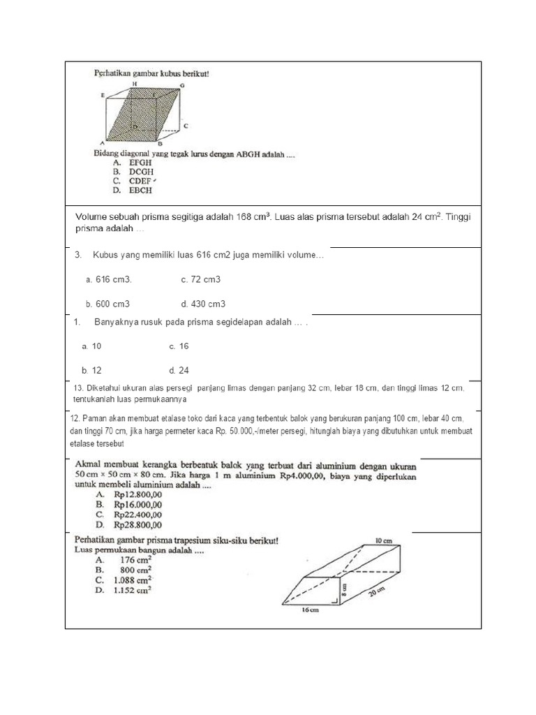 Diketahui Prisma Trapesium Siku Siku Dengan Panjang Sisi Sejajarnya 16 Cm Dan 12 Cm Jika Jarak Sisi Brainly Co Id