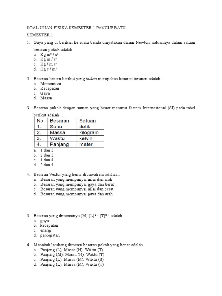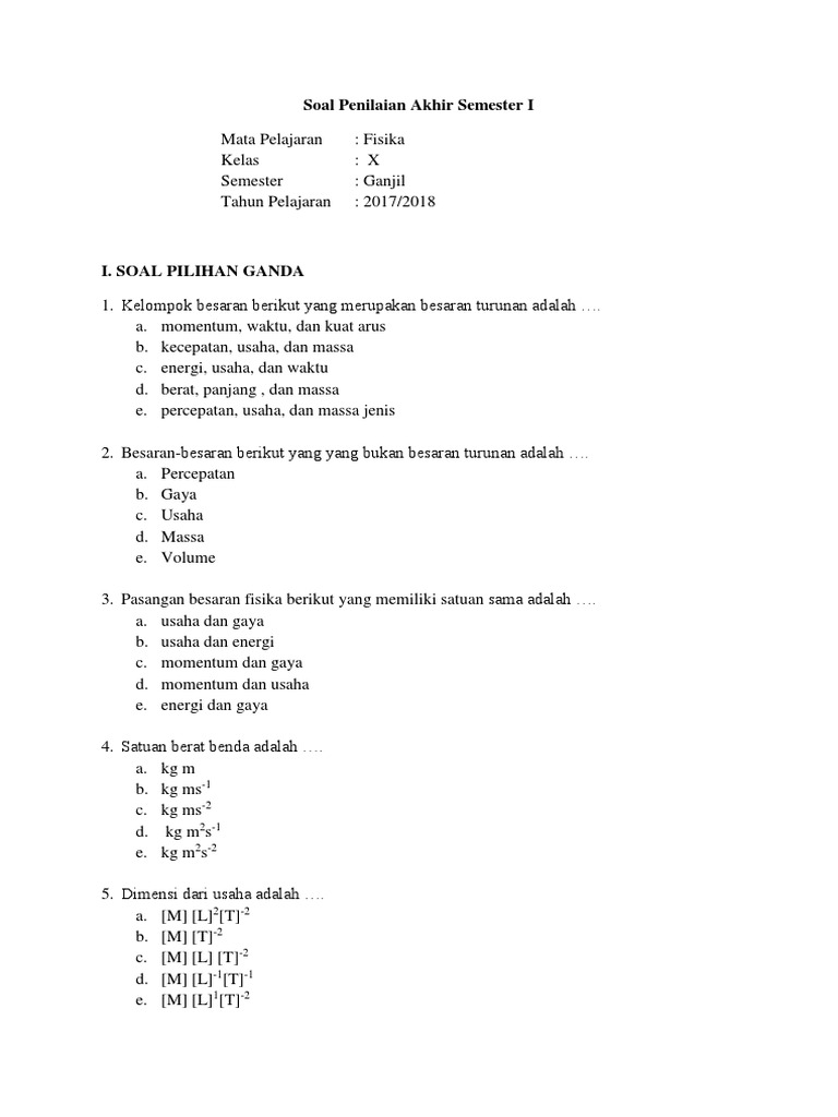Pak Ali Docx Soal 1 Di Bawah Ini Yang Merupakan Besaran Turunan Adalah U2026 A Waktu Momentum Panjang B Momentum Gaya Kecepatan C Panjang Massa Waktu D Course Hero