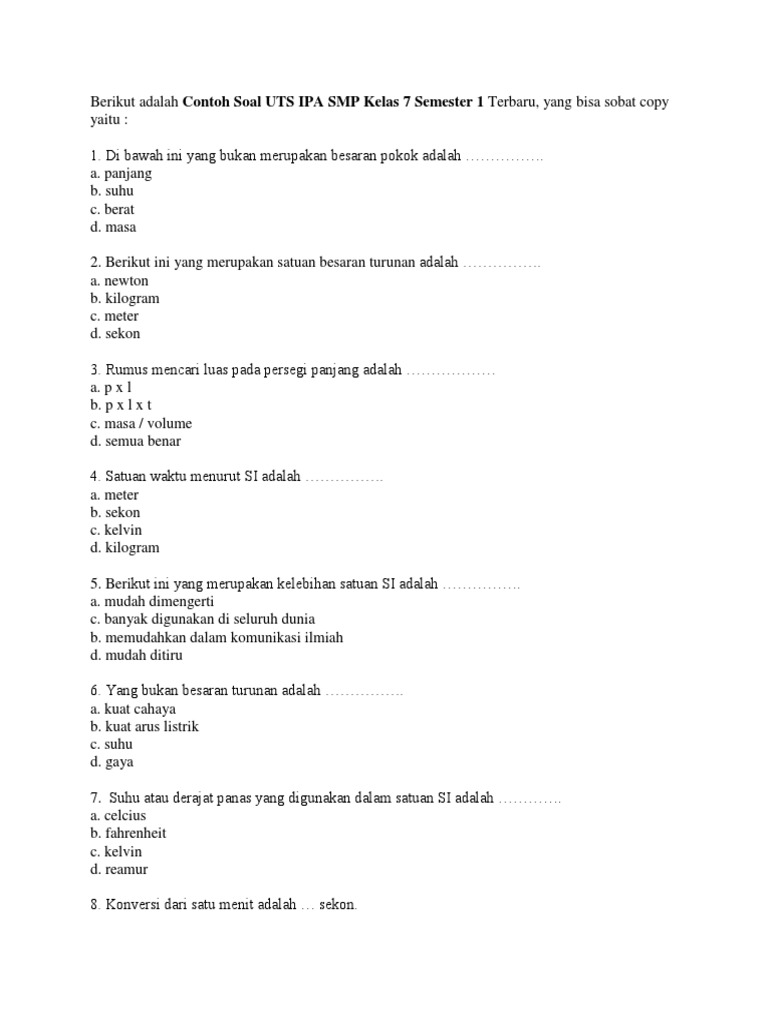 Contoh Soal Psikotes 1 Contoh Soal Uts Ipa Smp Kelas 7 Semester 1