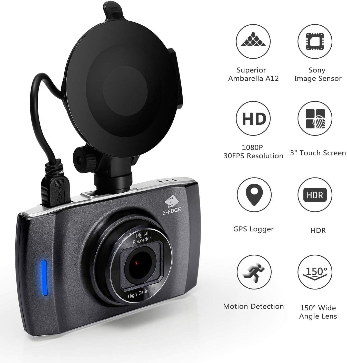 Amazon Com Dash Cam Z Edge T3 3 Touch Screen Full Hd 1080p Dash Camera For Cars With Gps Sony Sensor Super Hdr Night Vision 4 Preset Optimized Setting G Sensor Parking Monitor Loop Recording