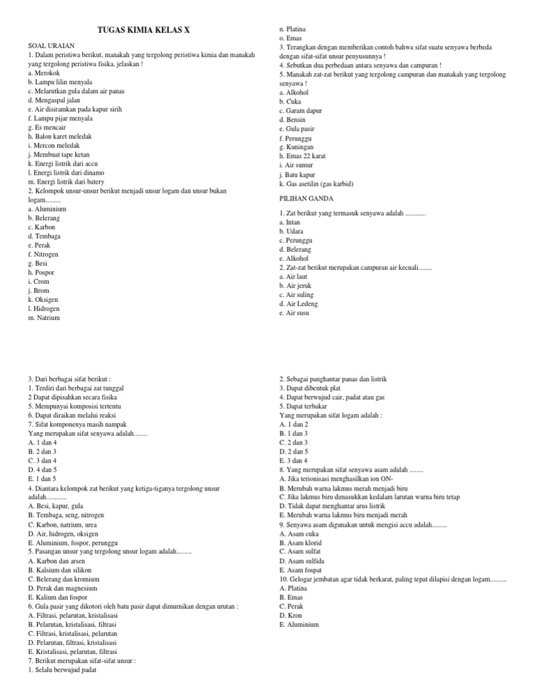 Doc Soal Soal Tentang Ikatan Kimia Dan Jawabannya Mey Lingga Academia Edu