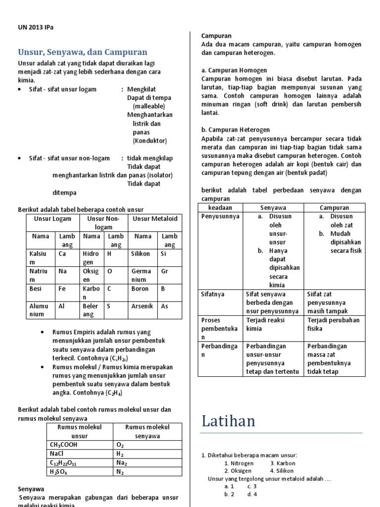 Latihan Soal Un Ipa Smp Materi Unsur Senyawa Dan Campuran