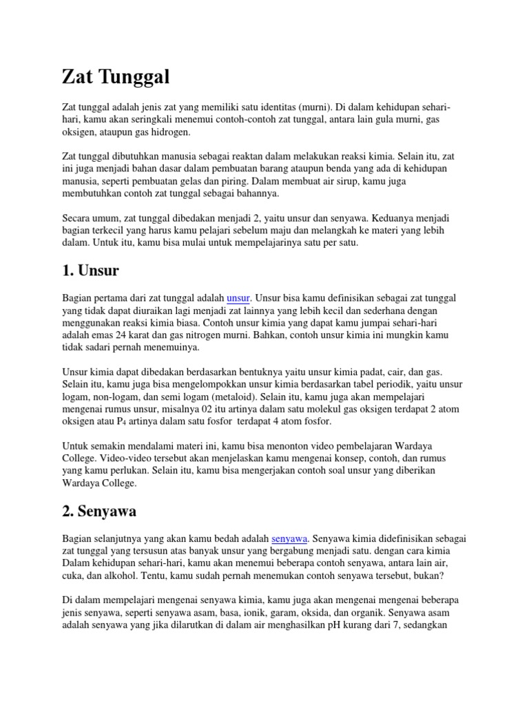 Zat Tunggal Adalah Pengertian Unsur Dan Senyawa