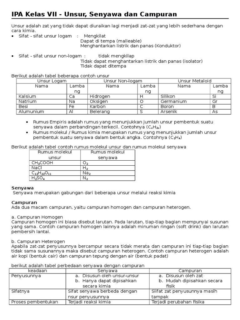 Unsur Senyawa Dan Campuran Pengertian Sifat Jenis Contoh